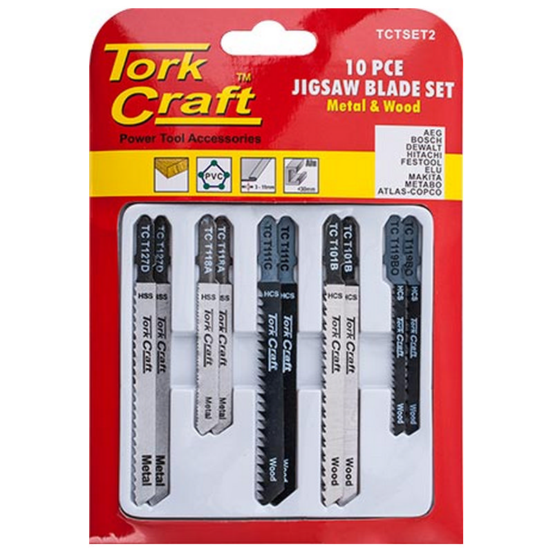 Tork Craft Jigsaw Blade Set 10 Pce For Metal & Wood T - Shank