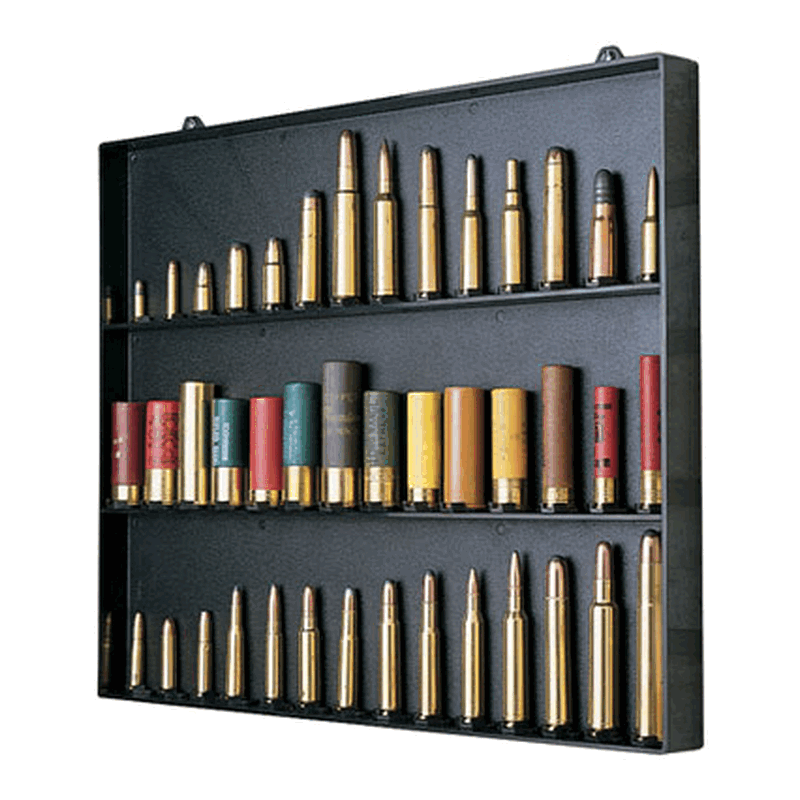 Cartridge collectors have used this display board for years to show off their shotshell collections. You can display up to 42 rounds in this attractive, economical display board. Each shotshell or cartridge is held securely with a unique clip. Holds 22 CB's up to 10 Ga. Shotshells. Bullets not included.