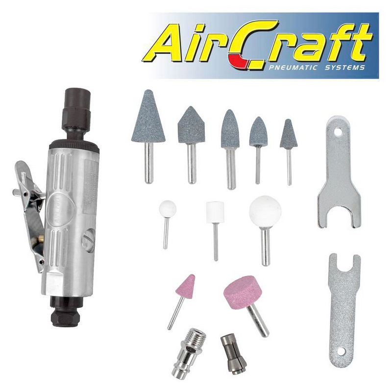 Air Craft Air Die Grinder 1/4" 14 Piece Kit Blow Mould Case