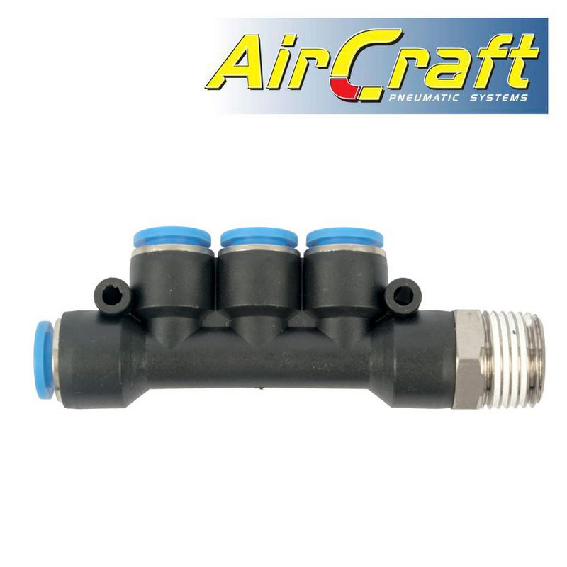Pu Hose Fitting Manifold 4 X 10mm Port X 1/2"M