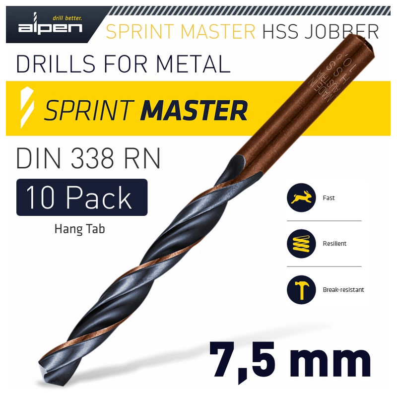 Alpen Sprint Master 7.5mm Hang Tab Din 10pack Din 338