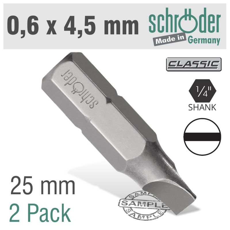 Schroder Slotted Bit 0.6x4.5mm 25mm 2cd