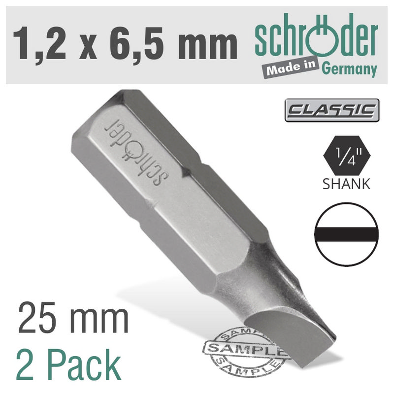 Schroder Slotted Bit 1.2x6.5mm 25mm 2cd