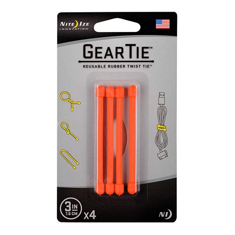 Nite Ize Gear Tie Reusable Rubber Twist Tie 3 In .- 4 Pack - Bright Orange Product Info