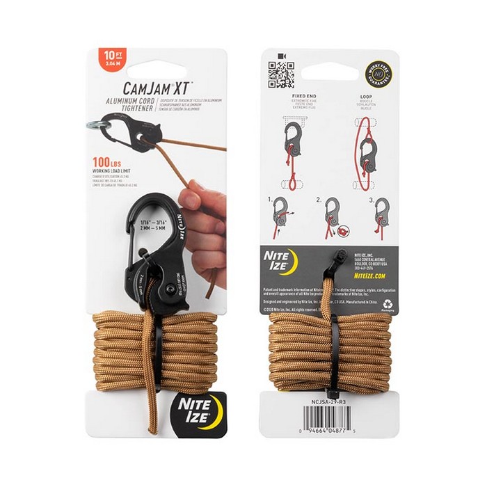 Nite Ize Camjam XT Aluminium Cord Tightener - With Coyote Paracord Product Info