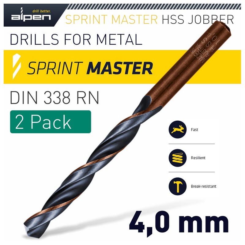 Alpen Sprint Master Din 338 4.0mm 2/Pack