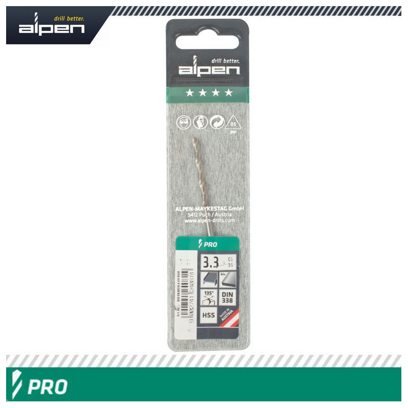 Alpen Pro HSS 3.3mm Drill Din 338 Rn 135 Split Point Plastic Wallet