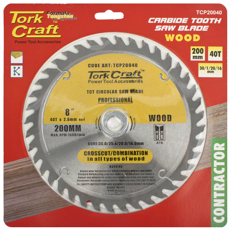 Tork Craft Blade Contractor 200 X 40t 30/1/20/16 Circular Saw Tct