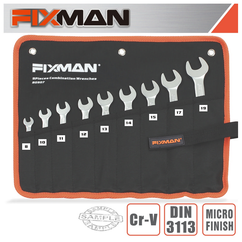 FIXMAN 9PCS COMBINATION WRENCH SET 8-10-11-12-13-14-15-17-19