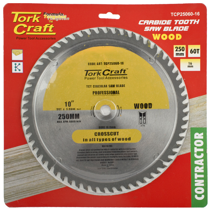 Tork Craft Blade Contractor 250 X 60t 16mm Circular Saw Tct