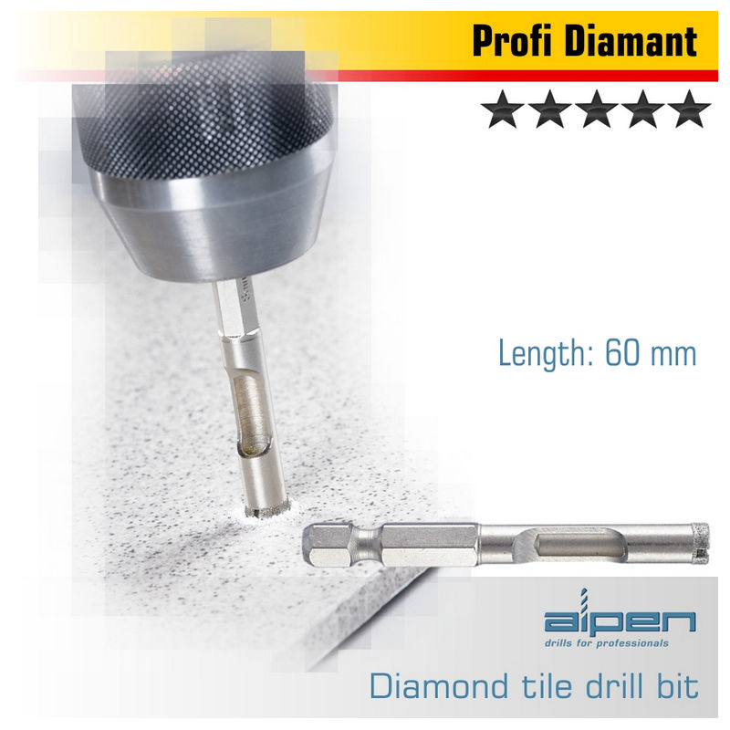 Alpen diamond drill bit for tiles. Water cooling is required.