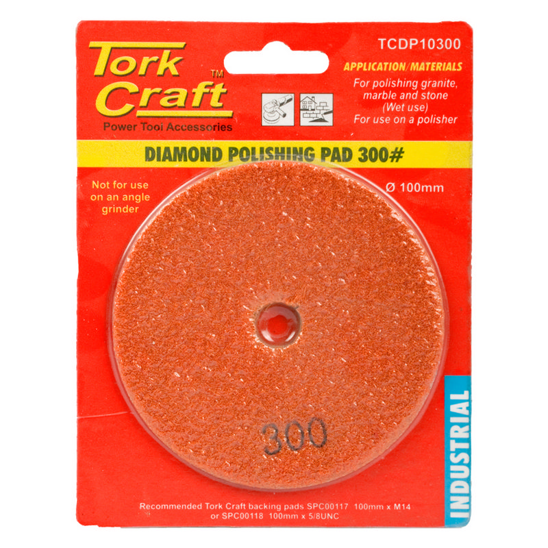 Tork Craft 100mm Diamond Polishing Pad 300 Grit Orange