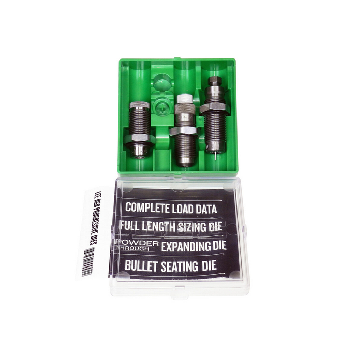 Use this set of dies if you plan to switch the cartridge on your Lee Pro 1000 or Load-Master press. Lee Pro Carbide progressive press reloading dies include carbide full length sizing die, powder through expanding die, bullet seat/crimp die and load data/instructions. For ALL progressive press die sets, the Shell Holder, Powder Dipper and Funnel Adapter & corresponding O-Ring are NOT included as they are not needed on the progressive presses.