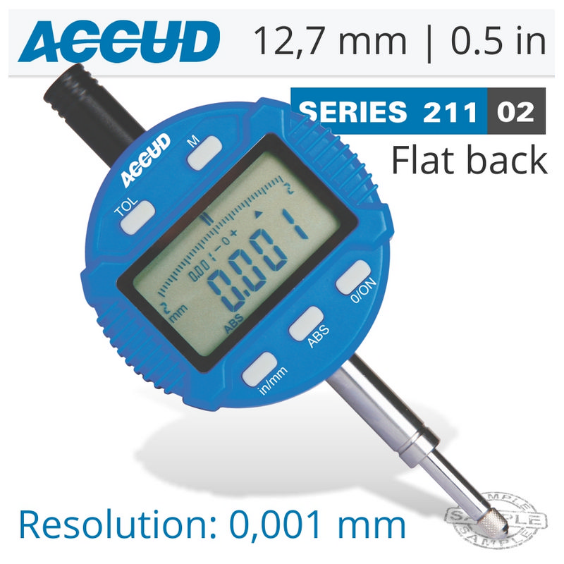 Accud Digital Indicator Flat Back 12.7mm/0.5"