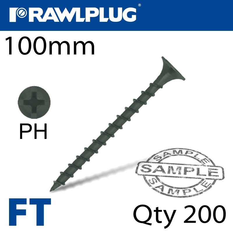 RAWLPLUG Drywall Screw Coarse Thread 4.8Mmx100Mm X200-Box