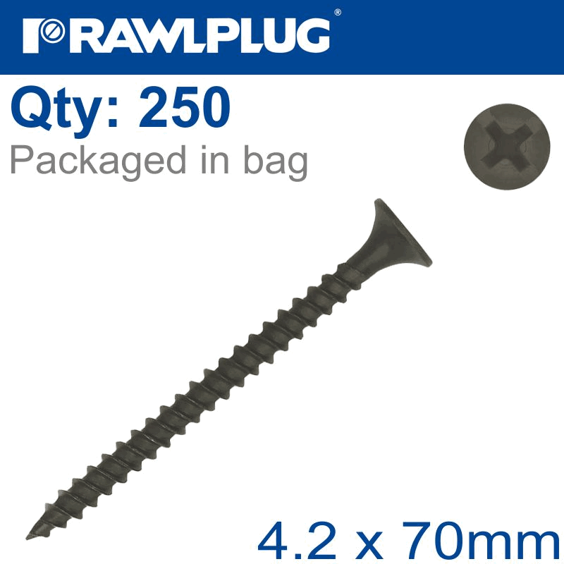 RAWLPLUG Drywall Screw Fine Thread 4.2Mmx70Mm X250-Box
