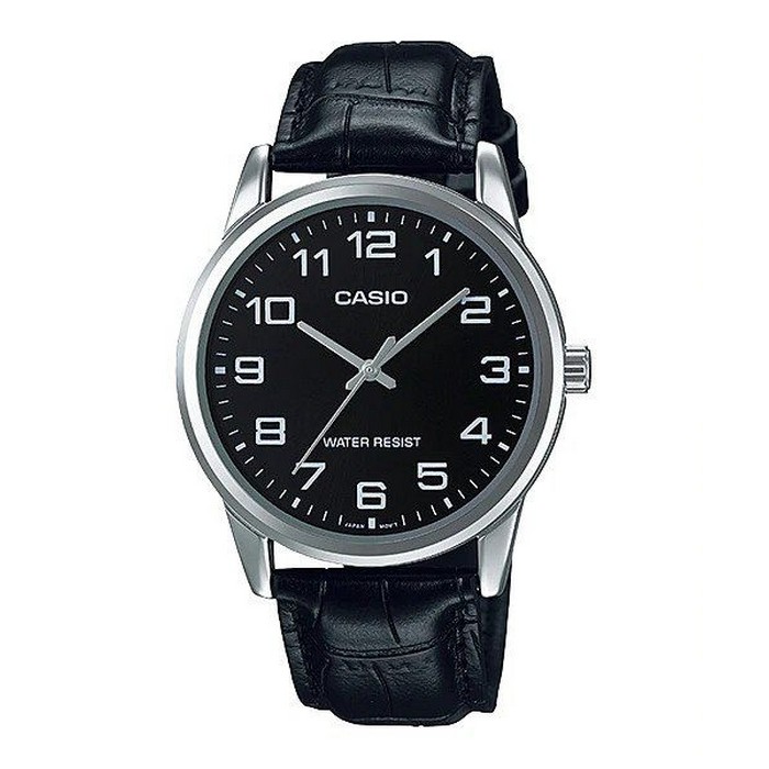 Casio Analog Black Leather Silver Bezel Watch Product Info