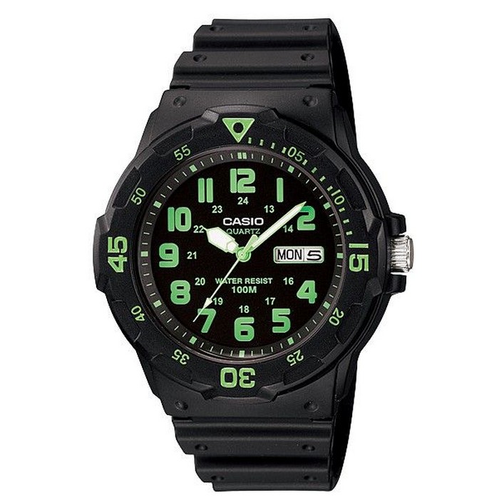Casio Analog Rotating Bezel Black Dial With Green Numbers Watch Product Info