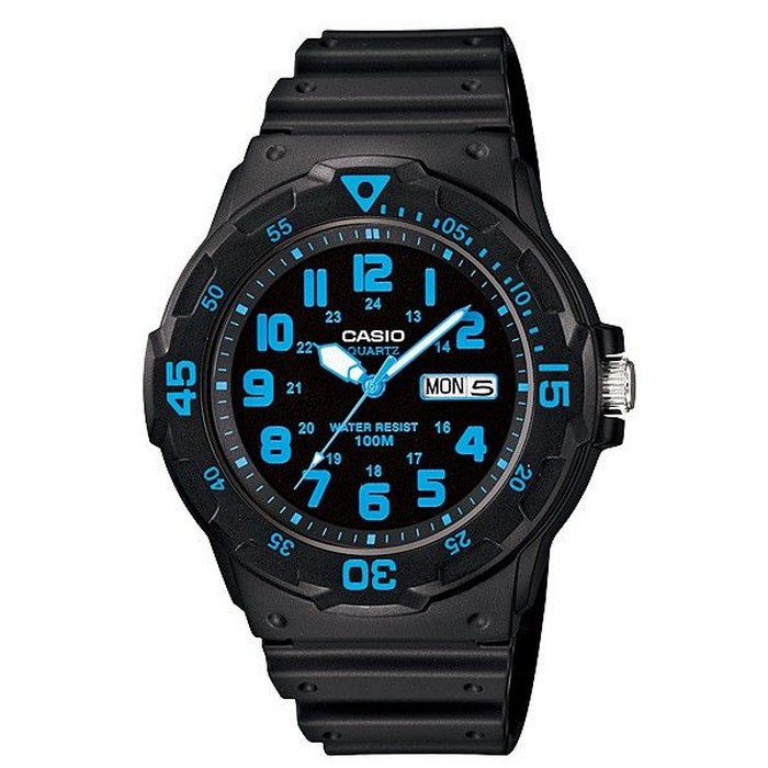 If you're searching for great value in a classic diver-look watch, look no further than the MRW200 from Casio. It's 44.6mm face and large indexes provide at-a-glance information. Couple this with a bi-directional rotating bezel and 100 meter water resistance and you've got a timepiece that's easy-to-read, simple-to-use and durable.