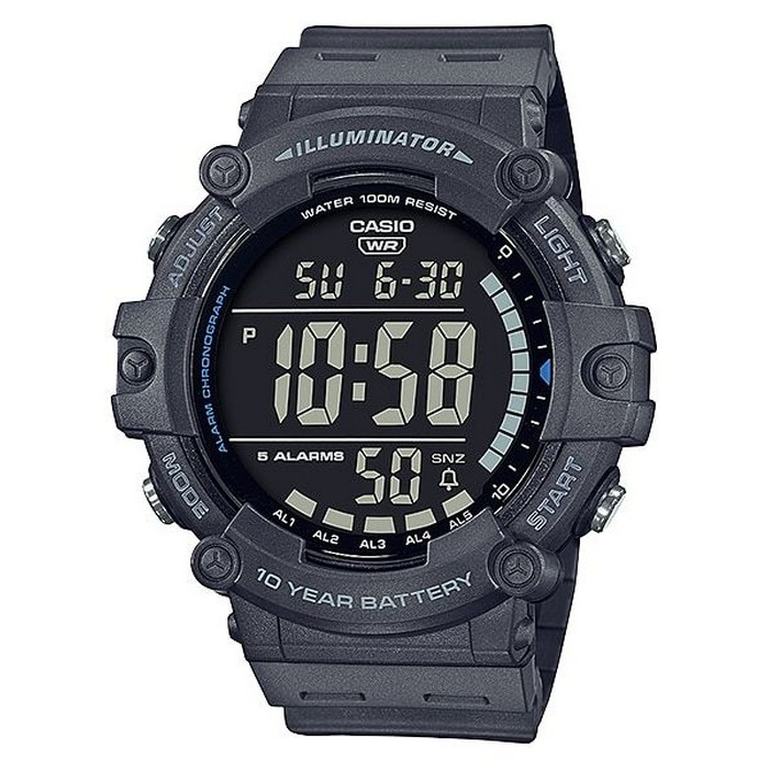 Described as a “wide face” model, the LCD display resembles full-digital Pro Trek watches with its larger digits. The bezel has four G-Shock-like bumpers that protect the display and give the watch a rugged style (but a closer look reveals that the front screws are not really screws). The cost-cutting is most apparent with the use of resin glass, which is inferior to the mineral glass that is typically used for G-Shock and Pro Trek watches. One thing in the AE-1500WH’s favor is the approximate 10-year battery life, thanks to the use of a large CR2032 battery. It is also water-resistant to 100 meters.
