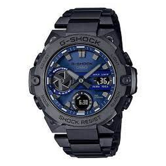 Introducing new color variations to the lineup of slim G-STEEL GST-B400 models with new, improved designs made possible by a thin module and carbon core guard structure. The GST-B400BD features a black IP case and band, and a blue vapor deposition dial.