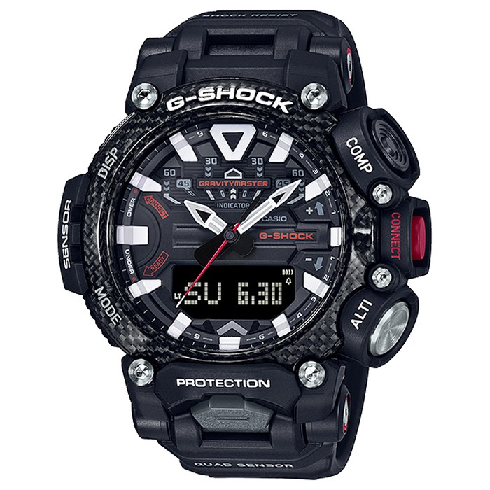 These G-SHOCK Master of G “GRAVITYMASTER” GR-B200 models pack flight mission essential functions into a tough and rugged carbon core guard structure. A high-strength, highly weather-resistant carbon core guard structure protects the module with a resin case reinforced with carbon fibers. This, combined with world-renowned G-SHOCK shock resistance, creates a structure that is also highly vibration resistant.