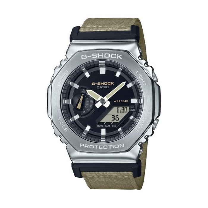 Add a utilitarian statement to your style with a G-SHOCK from the Utility Metal collection. These innovative watches take the iconic octagonal form and metal-clad design of the GM-2100 line and pair it with a casual fabric band in an utilitarian color that goes with any outfit. The striking contrast of metal and fabric results in an rugged style that is all about toughness and casual sophistication.