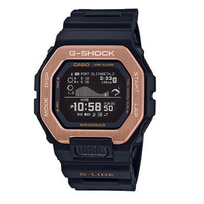 From the G-LIDE Series of G-SHOCK extreme sports watches comes a pair of new models that add night surfing designs to the GBX-100. This new model comes with the ability to display information required by surfers (high tide and low tide times and levels), and to use a phone application for simple selection of one of approximately 3,300 locations around the globe.