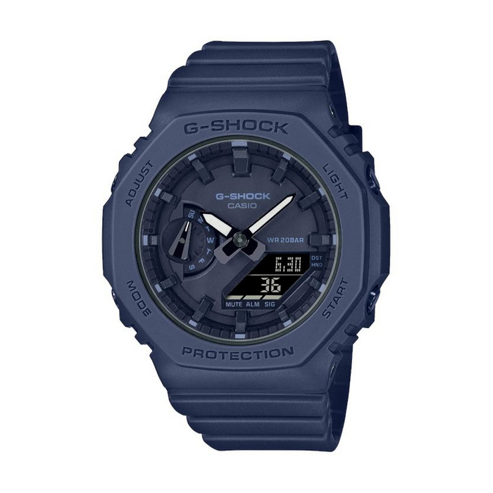 The same tough construction of the original GA-2100, but in an even slimmer, more compact design. The flat watch face and simple bar indexes project a minimalist look and feel that shows you know right where you’re going. A casual, comfortable G-SHOCK in stylish solid colors.