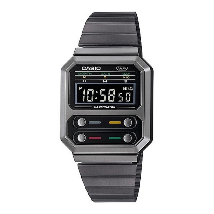 Indulge your inner gadget geek with this stylish non-gendered timepiece straight from the Casio Vintage collection. The A100 line pays homage to the F‐100, the first Casio watch built with a resin case. We’ve kept the iconic layout with four front buttons but introduced metallic components, still vintage-style, for an updated take on a true classic.