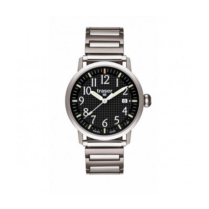 Beautiful and very elegant Traser H3 watch with steel case, mineral glass, large, easy to read digits, flexible leather bracelet.