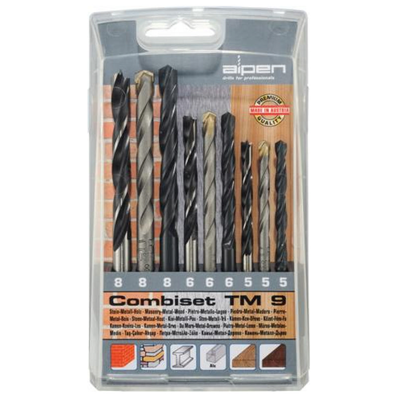 Alpen Wood-Steel-Masonry Drill Bit Set 9 Piece 5 6-8