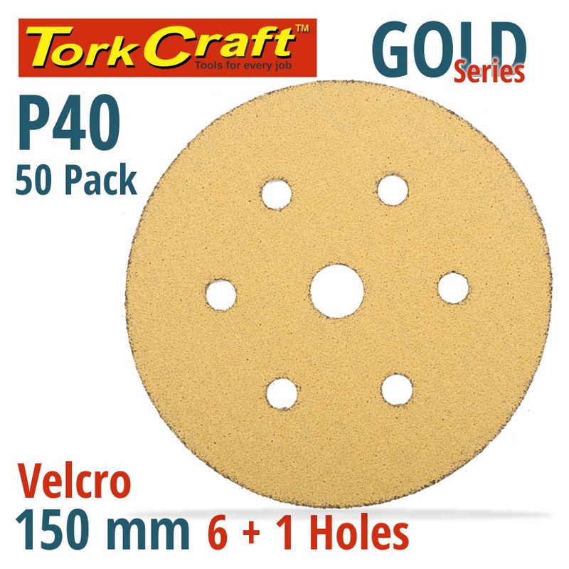 Tork Craft Gold Velcro Disc (50 Pieces) 40 Grit 150mm X 6+1 Holes