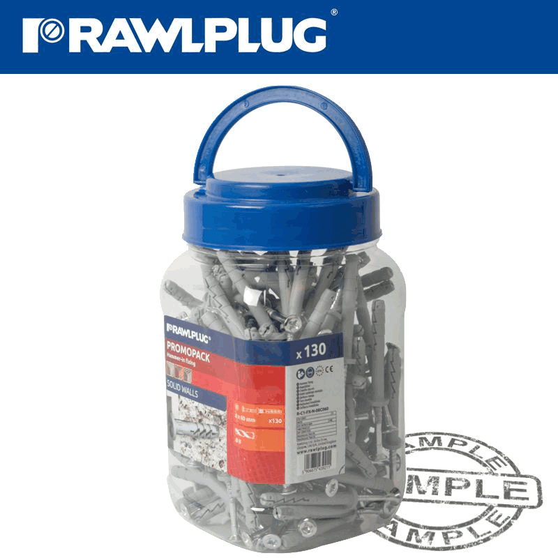 RAWLPLUG Hammer-In Fixing 8X60Mm Cyl Head With Screws X130 Per Jar