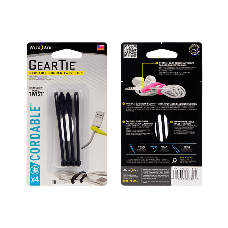 • Nite Ize Gear Tie Cordable Rubber Twist Tie  3" - 4pk Black (GTK3I-01-4R7)