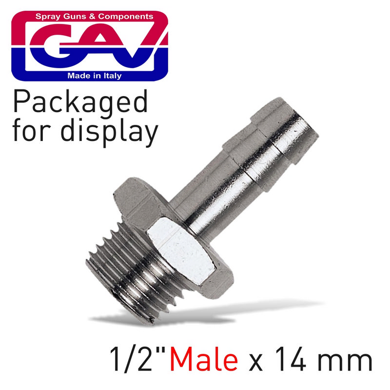 Gav Hose Adaptor 1/2" X 14mm Hose Packaged