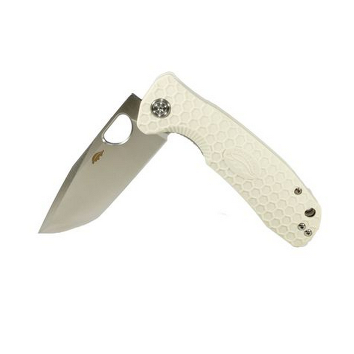 The Honey Badger Tanto Knife Small, White has frictionless opening and closing action, facilitated by two opposing roller bearings containing a total of 18 ball bearings. Very few knives ever achieve such an immaculate action, and this feature makes using them an absolute pleasure.