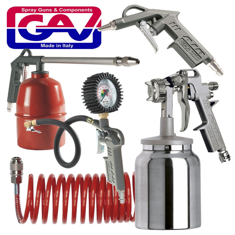 GAV pneumatic fittings from ItalyWorkshop kit with Suction feed spray gun