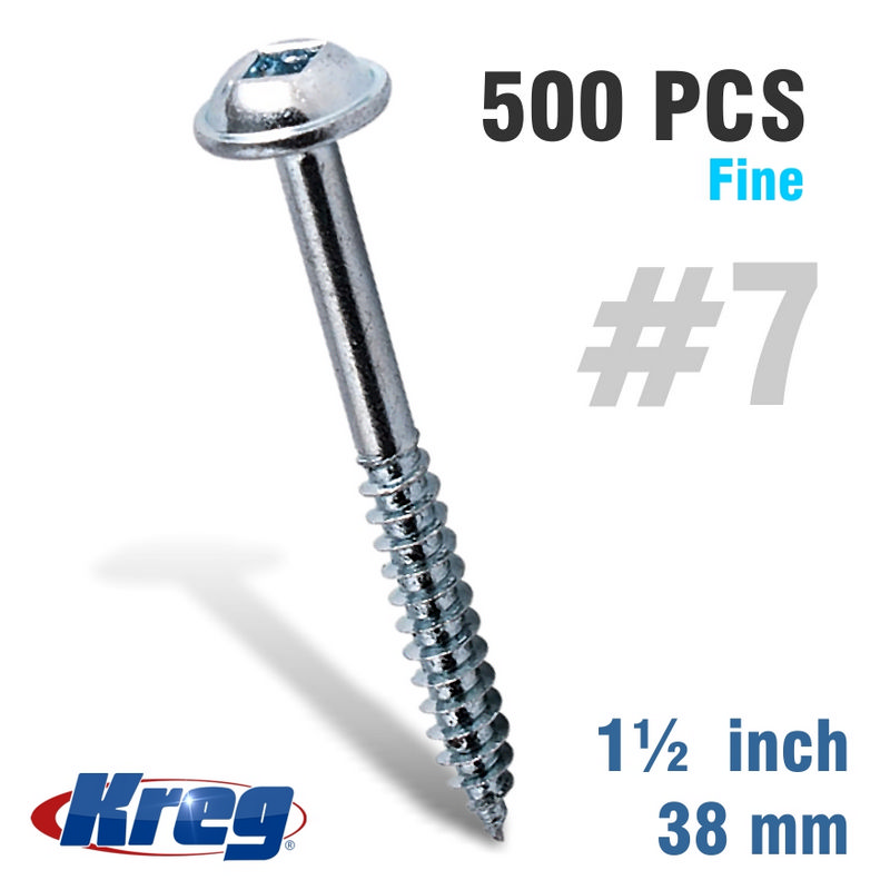 Kreg Pocket Hole Screws 1-1/2" #7 Fine Washer Head 500ct