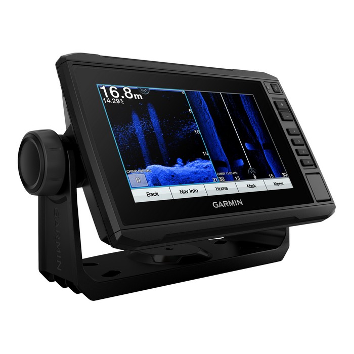 The sunlight-readable 7” touchscreen chartplotter features a quick-release bail mount, and the transducer bundle adds Ultra High-Definition scanning sonar and CHIRP traditional sonar.