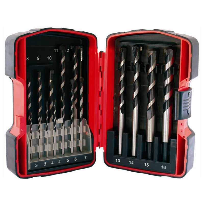 Tork Craft Masonry Drill Bit Set 16pc 3 - 16mm In Plastic Case