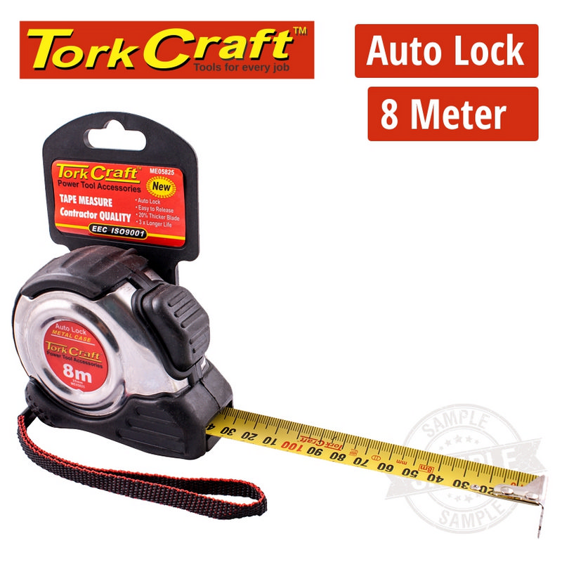 Tork Craft Measuring Tape Self Lock 8m X 25mm S/S & Rubber Casing Matt Finish