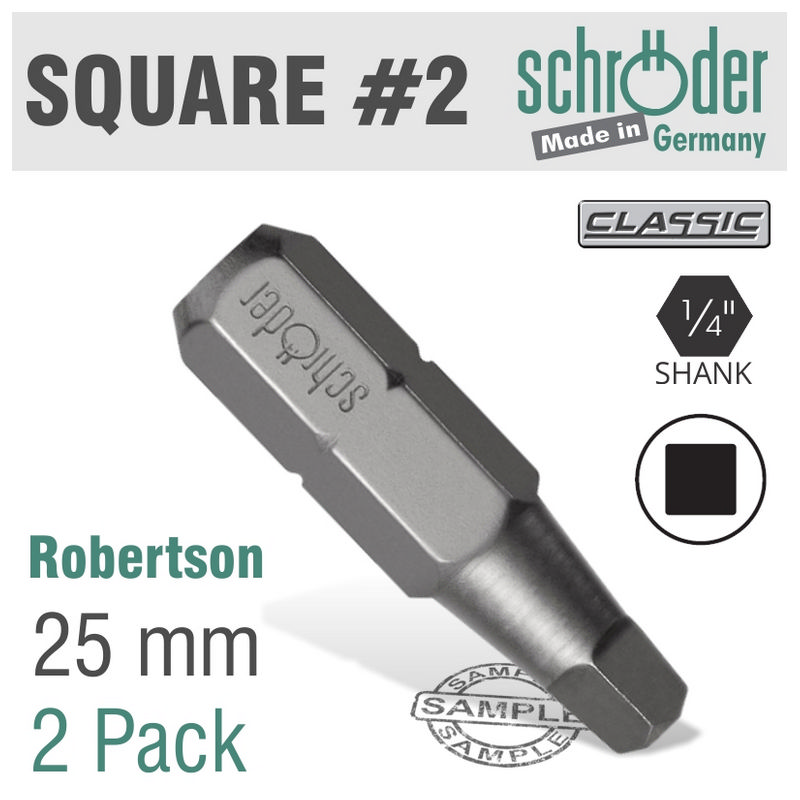 Schroder Sq.Recess No.2x25mm Bit 2/Card