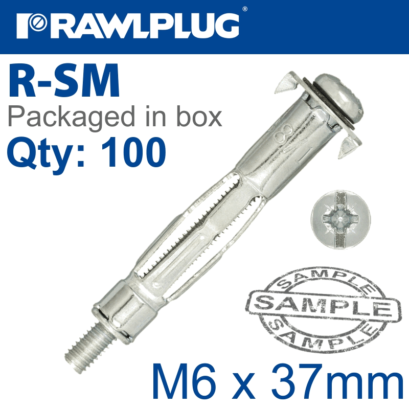 RAWLPLUG Interset Fixing For Drywall M6X37Mm X100-Box 12Mm Drill
