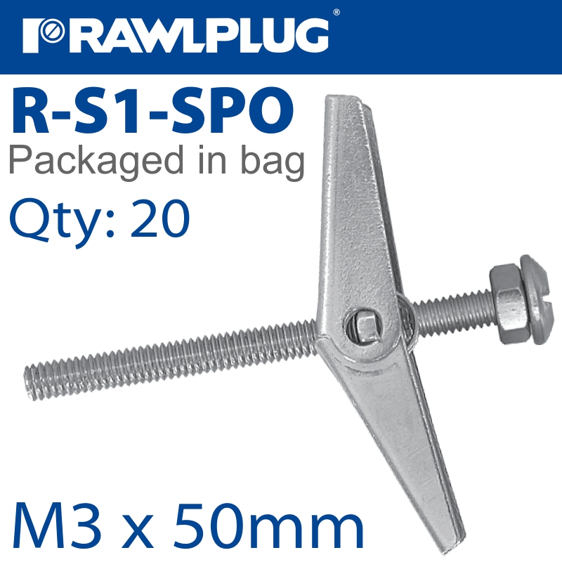 RAWLPLUG Spring Toggle+Screw M3X50Mm X20-Bag