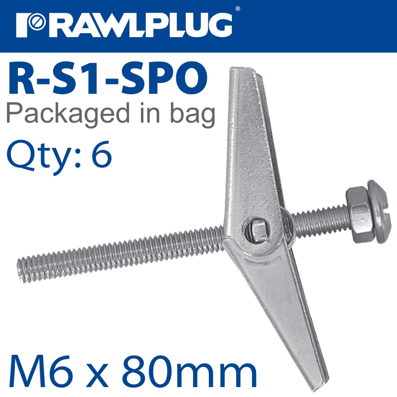 RAWLPLUG Spring Toggle+Screw M6X80Mm X6-Bag