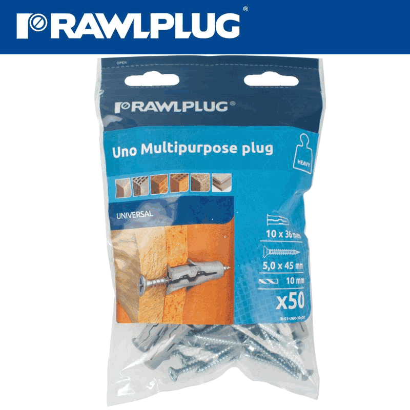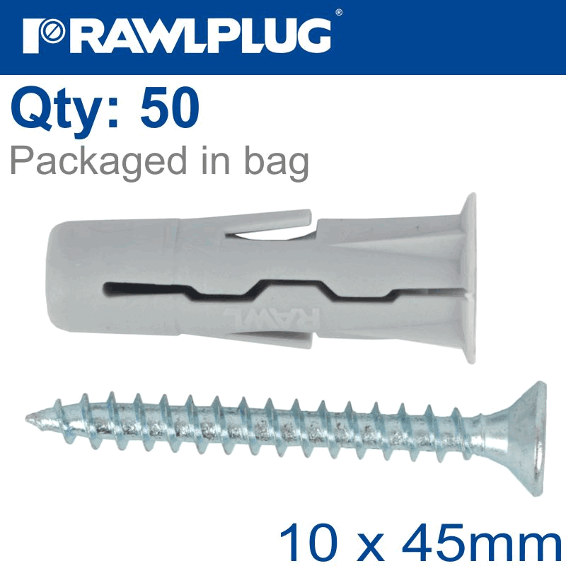 RAWLPLUG Universal Plug With Screw 10X45Mm X50 Per Bag