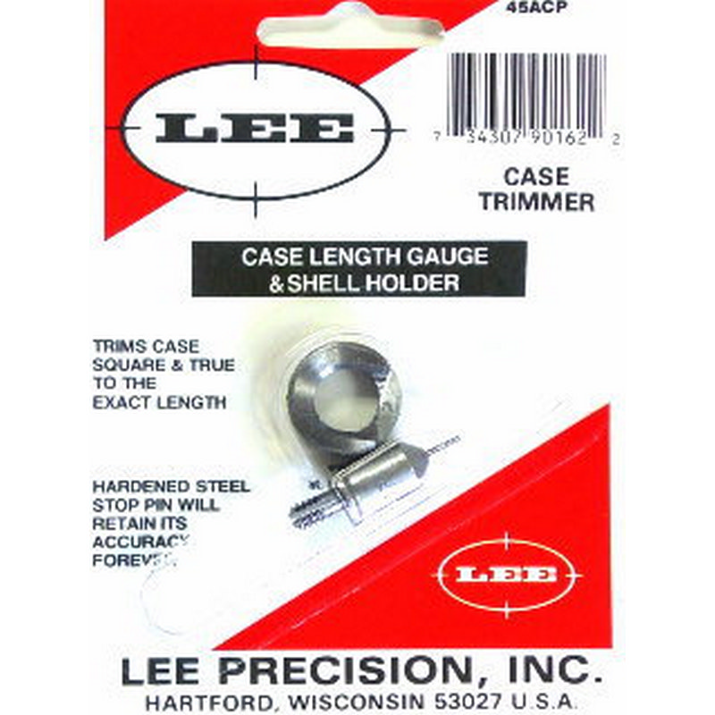 This Lee Precision Case Length Gauge is the easiest way to trim .45 ACP (Automatic Colt Pistol) cases to the proper length while squaring case mouths at the same time. The hardened steel Case Length Gauge is precisely sized to produce cases perfectly trimmed to the SAAMI (Sporting Arms and Ammunition Manufacturers' Institute) standard length. The specially designed shell holder helps keep everything square.