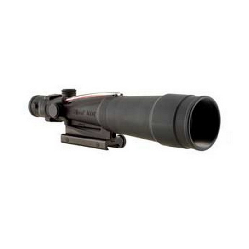 ACOG 5.5x50 Red Chevron BAC Flattop.223 Reticle includes flat top adapter. The chevron reticle is designed to be zeroed using the tip at 100 meters. The width of the chevron at the base is 5.53 MOA which is “19 at 300 meters. This allows range estimation for silhouette targets.
