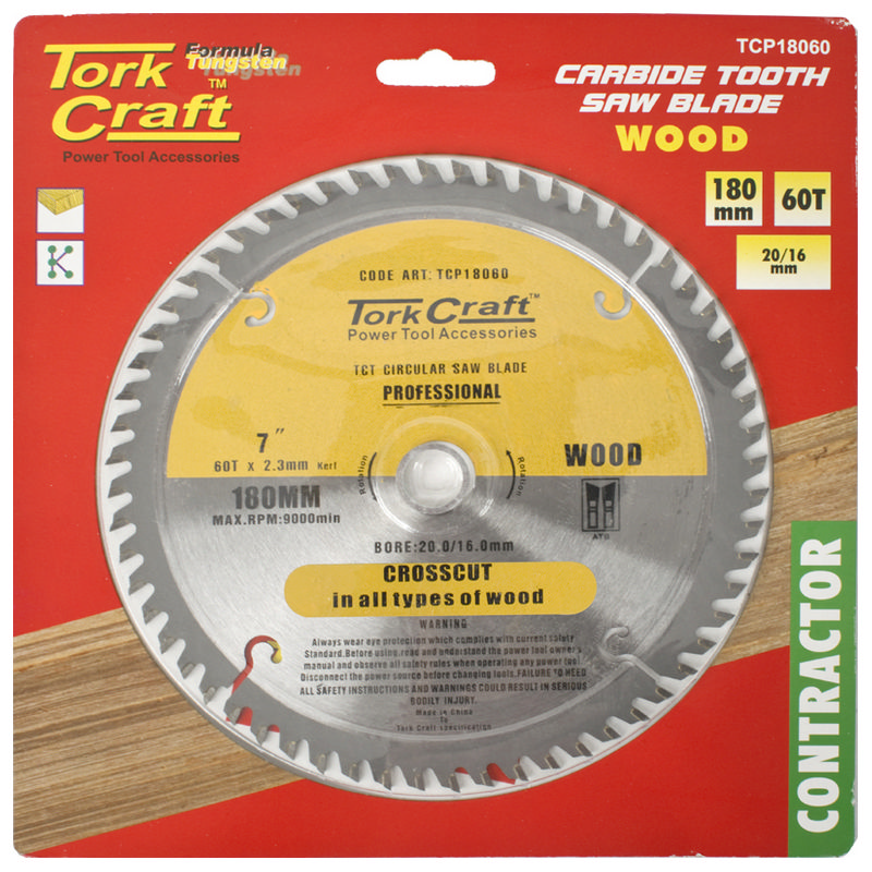 Tork Craft Blade Contractor 180 X 60t 20/16 Circular Saw Tct
